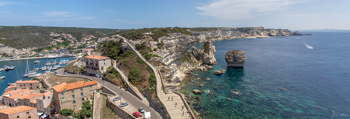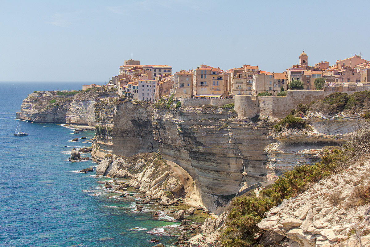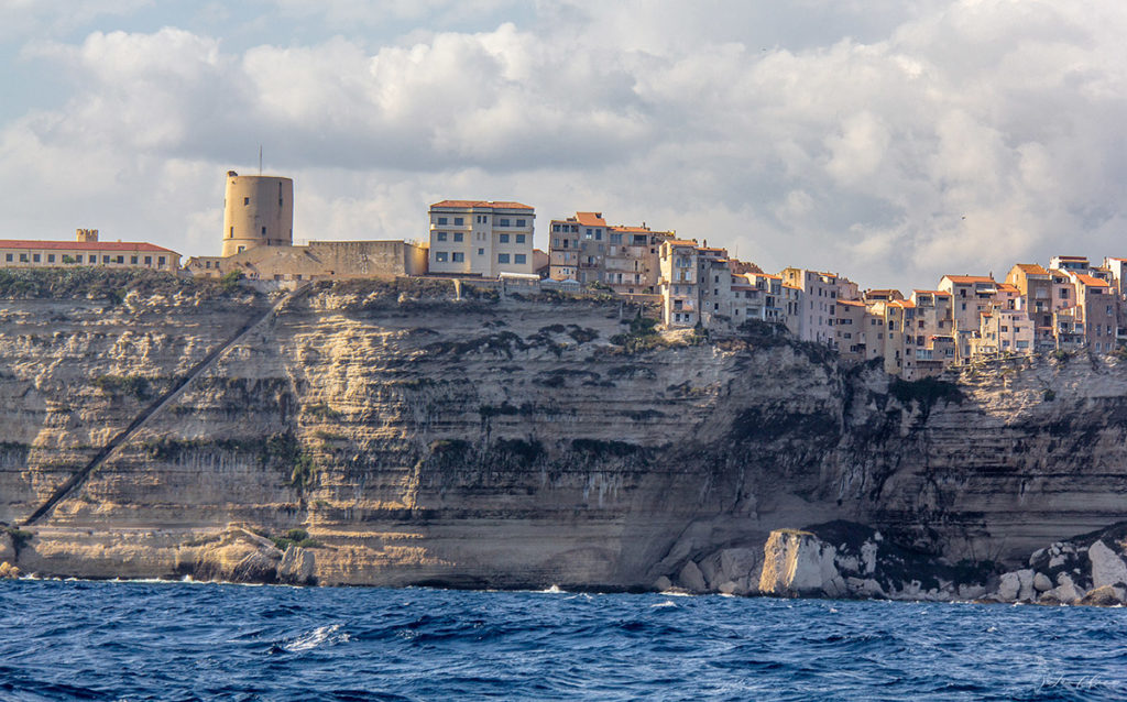 В Бонифачо у нас было две ночи. Поэтому ребята с маленьким сыном решили ночевать на берегу. И в первый наш вечер, после заселения ребят, оформления входа у нас, и достаточно изматывающего перехода, силы остались только на быстренько посмотреть вокруг марины, поужинать и спать. А на следующий день уже пошли гулять. Если подытожить в целом, то если вдруг вас занесет даже просто куда-либо неподалеку, то однозначно стоит сделать круг и заглянуть в Бонифачо. Совершенно очаровательный городок и просто потрясающие виды во все стороны с верхнего города. Разбирая фотографии сейчас, уже через два месяца после того как все было, я понимаю, что у нас совершенно нет фотографий самого городка. Когда проводишь в Европе какое-то время, то вроде как все старые центры городов с их переплетениями узеньких улочек и домишек начинают выглядеть похоже, и рука не тянется к камере. Так что придется вам поверить мне на слово, что он очарователен. У меня только виды во все стороны в изобилии 🙂