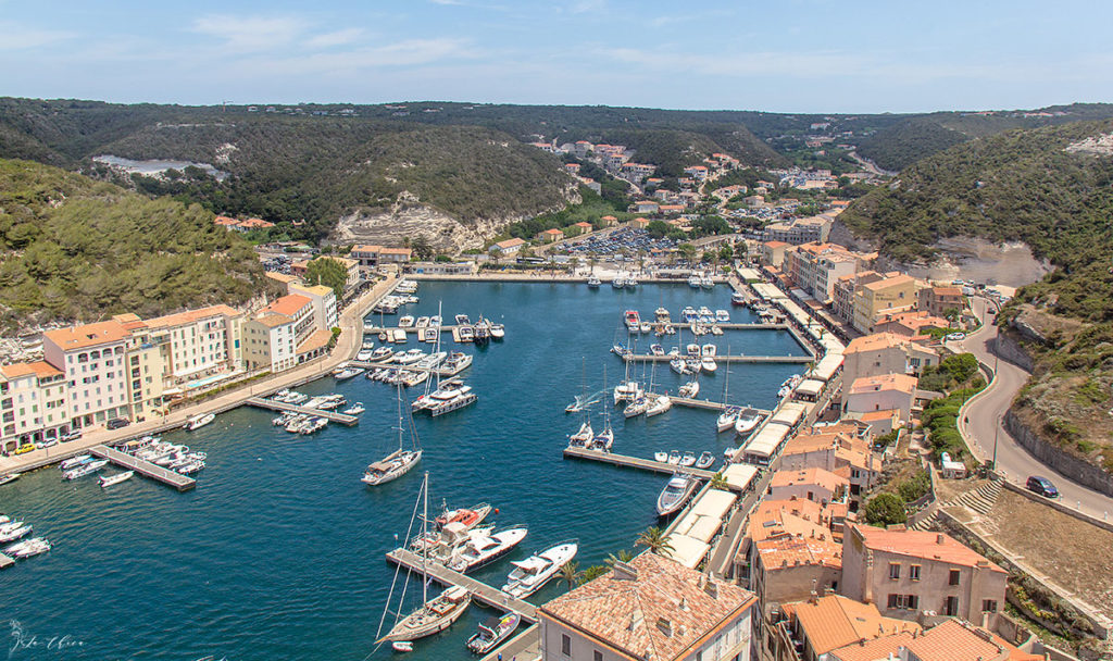 Бонифачо расположен просто-таки идеально для торгового порта и для возведения защитных сооружений. Длинный и узкий полуостров, с отвесными стенами до 60 метров высотой, прикрывает такую же узкую и длинную бухту, защищая ее от ветра, волн и неприятеля. В длину она больше 1,5 км. И изначально город отстраивался из двух частей. Нижний, марина или портовая часть, и верхний, куда идеально вписались крепостные стены для защиты жилой части города и входа в бухту. Более менее точную дату основания города не знает никто. Еще до нашей эры тут точно жили римляне и греки. Где-то в IX веке нашей эры город получает имя в честь каких-то неизвестных нам заслуг пизанца Бонифичио. И это же идеальное местоположение было причиной постоянных войн и захватов города. Кого только там не было: корсиканцы, пизанцы, генуэзцы, арагонцы, французы, итальянцы и даже турки. И все они оставили свой след в облике и атмосфере города – он прекрасен. На Корсике мне кажется это самый впечатляющий город, хотя все я конечно не посетила для полноценного сравнения. Но количество туристов на квадратный метр просто зашкаливает. И ни одна проходящая мимо яхта не пропускает его. Поэтому марина Бонифачо просто перегружена, особенно в сезон, когда мы и попали туда.