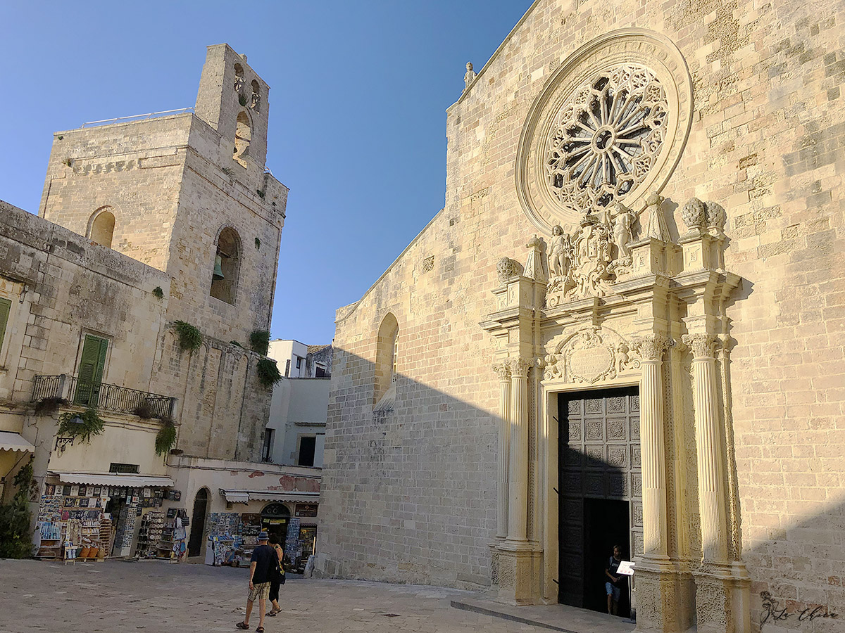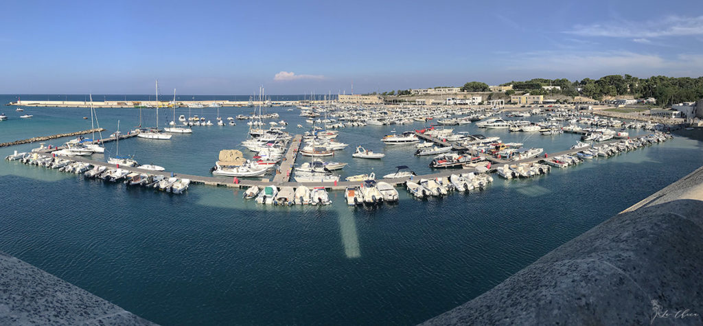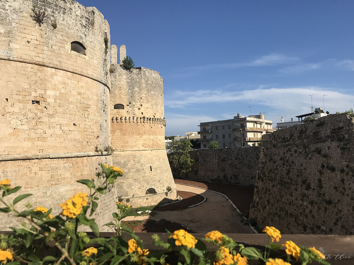На вторую ночевку выбрали Отранто, куда успели прийти засветло. Отранто — маленький городок с населением около 6 тысяч человек. Но своей историей уходит на сотни лет назад. Дата основания города мне не попалась, но в 11 веке на этом месте уже точно была крепость. Известен город в том чисте и тем, что в 1480 году на него напали турки и хотели обратить местное население в ислам. И 14 августа 1480 года 813 человек были обезглавлены на холме Минервы, потому что отказались принять ислам. В 1539 году папа Римский Климент провозгласил их всех блаженными и с тех пор они являются покровителями Отранто. И совсем недавно в 2013 году папа Франциск признал их всех — 813 человек — святыми. Их отрубленные головы находятся в Кафедральном городском соборе Отранто! Но все это я тоже узнала уже из интернета. Сами мы успели только прогуляться по старому городу, кусочку набережной и поужинать. Зайти внутрь ни крепости, ни кафедрального собора не получилось.