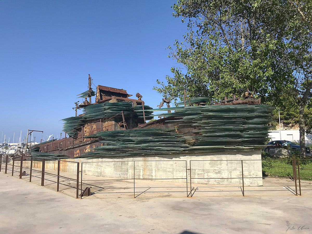 Современное искусство на выходе из марины. Из стекла и ржавого железа