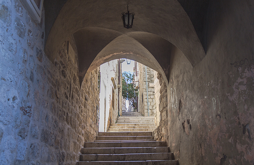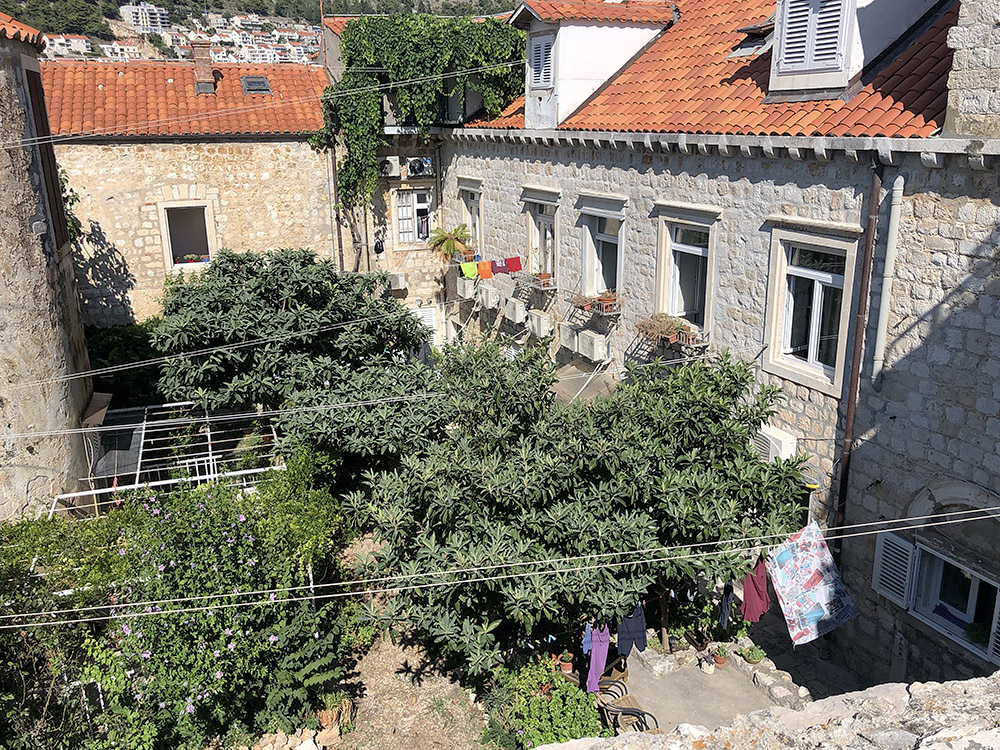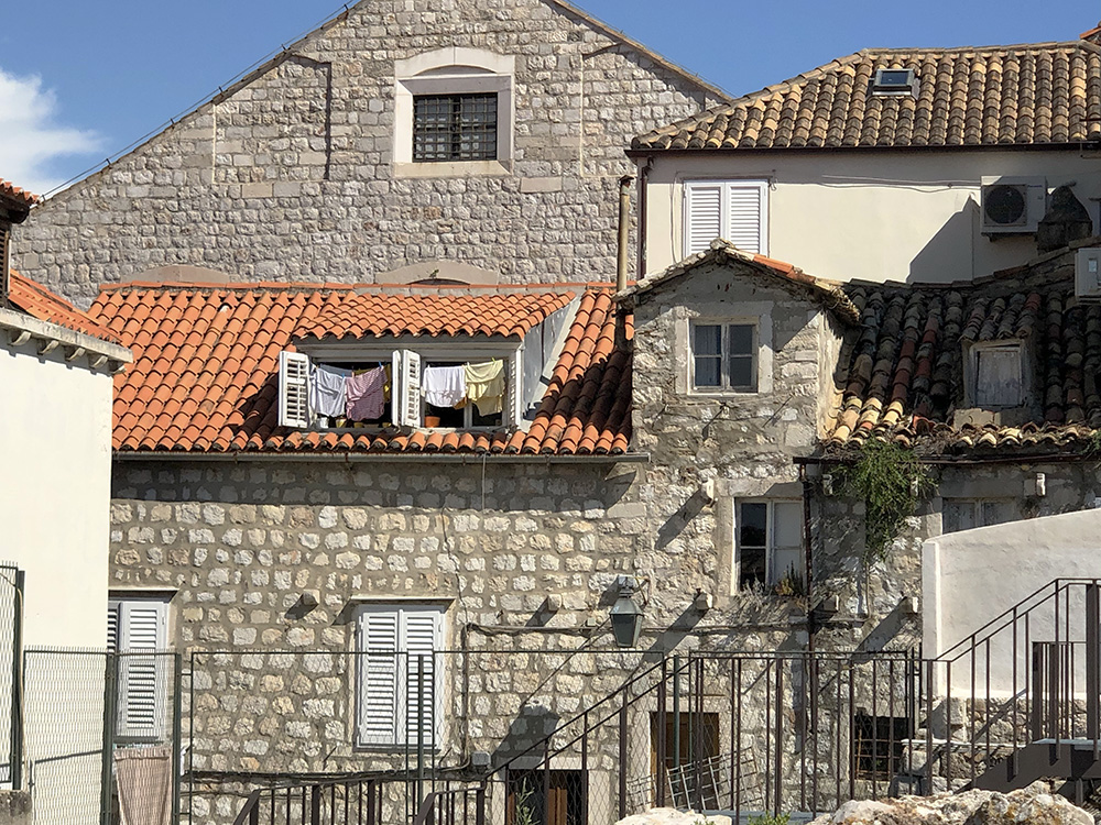 А теперь та часть, которая меня может быть впечатляет в таких местах сильнее всего: реальная жизнь или бытовуха 🙂 Знаю, что подглядывать не хорошо 🙂 но никогда не могу отказать себе в таком удовольствии. В историческом центре Дубровника до сих пор живут просто люди. Может быть, кто-то из них просто снимает здесь жилье потому что ближе к работе и может быть дешевле (как старый не обустроенный фонд, но это мои мысли). Но пока гуляла по дальним малопроходным улочкам, встретила даму в годах с собачкой, просто на прогулке. Пока наблюдала их и приближалась, все мы вместе состыковались еще с одним дедушкой, выносящим мусор. Прямо передо мной они остановились, мило побеседовали минутку, и пошли дальше каждый по своим делам. Дворик дедушки я чуть позже видела, и это действительно просто жилой дом со всеми атрибутами. А сейчас просто фото старого жилого и живого Дубровника