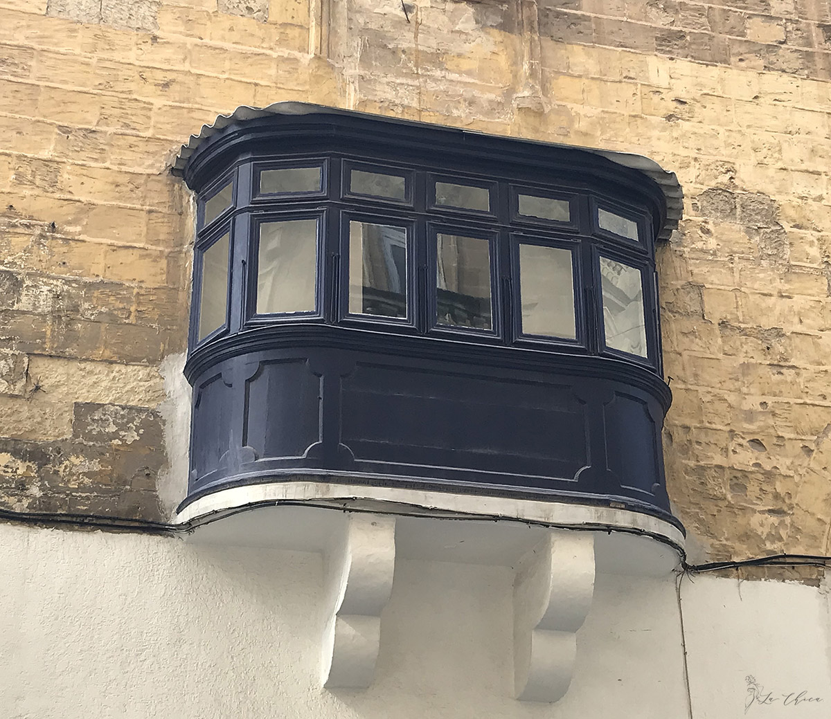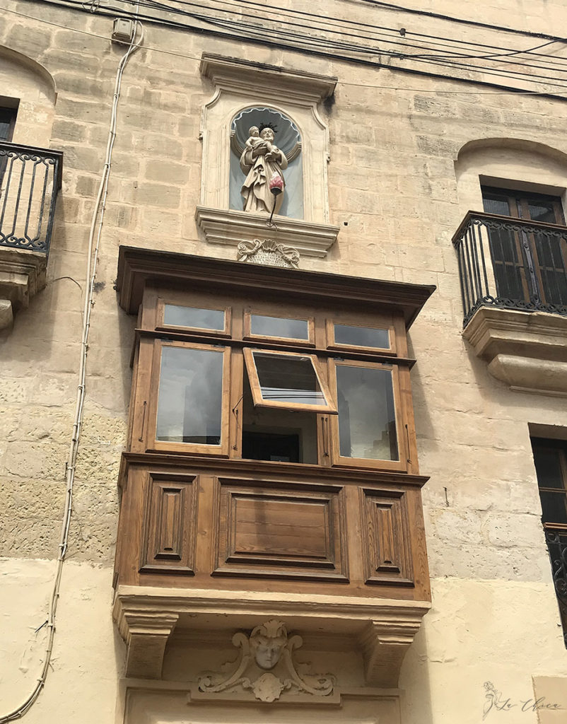 Одной из визитных карточек Валлетты, и тем что действительно бросается в глаза и запоминается, являются их цветные деревянные балконы. Все дома построены из светло-желтого песчаника и яркие балконы просто не возможно не заметить. Я слышала несколько версий их появления. По одной, все тот же департамент строительства обязал украшать дома, и балконы стали именно этим украшением. По другой, первые балконы были построены во дворце Великого Магистра, и уже оттуда разошлись в массы. Но есть и третья версия, более романтичная. Согласно ей появление балконов идет еще из арабского периода Мальты. Ведь арабским женщинам нельзя было появляться на улице просто так. А любопытство никто не отменял. Вот они и наблюдали сначала через окна, а потом с закрытых балконов, на которых окна выходят сразу на три стороны. А еще есть и банально-утилитарная версия. Мальтийские балконы в жаркое летнее время являются продолжением комнаты. Это и увеличивает ее площадь, и, если закрыть шторку, нагретый солнцем воздух останется на этом балкончике и в комнате будет чуть прохладней. А на зиму в этот проем ставили дополнительные створки-двери, чтобы чуть лучше сохранять тепло.