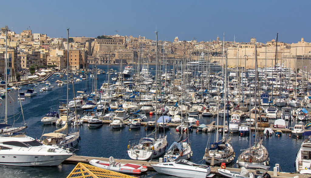 Валлетта впечатляет еще на подходе. Глубокая, разветвленная и изгибающаяся рукавами бухта вся одета в оборонительные, высокие и толстые, стены из камня. Я такого и в таких масштабах еще не видела. Пришли мы как всегда поздно. Но на удивление, даже после 9 вечера маринеры были в офисе и сразу поставили нас на место. Если честно, если бы мальчик не вышел на понтон, не факт что мы сами бы смогли опознать нужную нам марину. Таблички с названиями там как-то не особо популярны похоже, а марин очень много и они плавно перетекают одна в другую. Marina di Valletta расположена прямо под крепостной стеной, стоянка получается очень антуражненькой. В первый вечер никуда уже не пошли, ужин на лодке с созерцанием окружающей красоты и спать.