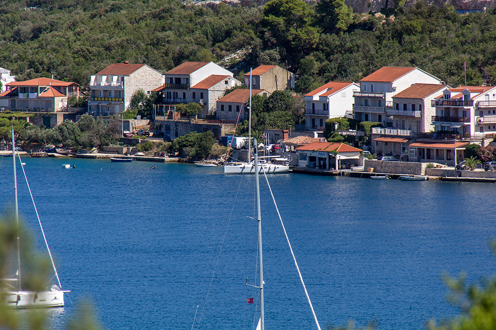 Вдоль набережной есть несколько ресторанов со своими причалами. Стоянка бесплатная, но ужинаешь у них. В день когда были мы, у каждого из ресторанов стояло буквально по одной лодке, хотя пишут что в другие года здесь не протолкнуться и не пришвартоваться. Ресторан Joseph полностью семейный: папа готовит на гриле, сын подает, а мама видимо на закрытой кухне. Меню нет, огласили устно что у них сегодня есть. Выбора в общем-то никакого и не предполагалось: рыба на гриле как основное блюдо и всякий сифуд на закуски. Цен вслух тоже никто не называл 🙂 Съели что дали, одну бутылку вина выпили за ужином, и еще одну попросили с собой на лодку забрать, потому что понравилось. А потом несколько удивились счету 🙂 Это оказался наш самый дорогой ужин на всю Хорватию, порядка 240 долларов. Все морепродукты везде готовят очень вкусно, но почему-то цена на свежую рыбу везде около 100 баксов за килограмм.