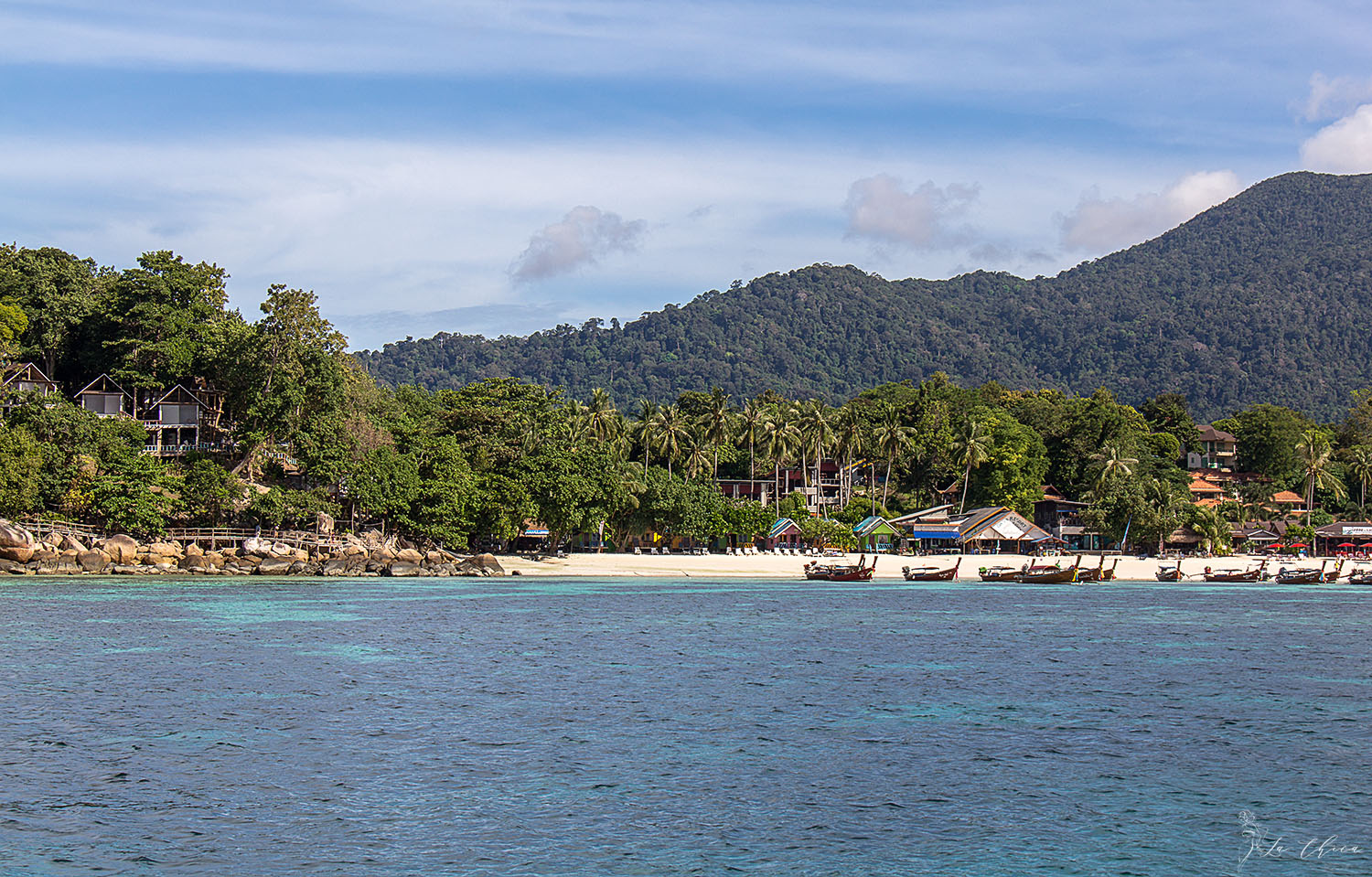 И вот наконец-то мы добрались до Ко Липе. И ничего не случилось, что заставило бы нас сбежать отсюда раньше запланированного и мы смогли не торопясь погулять по острову. Как я уже упоминала где-то раньше, за все эти годы и наши визиты к этому острову, у нас ни разу не получилось походить по нему спокойно. То мы слишком уставшие и сил только дойти до ближайшей кафешки, то погода портиться и надо срочно уходить, чтоб успеть встать в марину. То просто пришли поздно, а уходить уже рано утром. И гуляла по острову я наверное только году в 11 или 12, и то не сильно много. Но по сравнению с тем, что оставалось у меня в памяти, изменения грандиозные. Мне помнился островок с бамбуковыми бунгало и грунтовыми и песчаными дорожками. Сейчас все основные дорожки, хоть их и не много, заасфальтированы или забетонированы. Понастроено огромное количество отелей и кафешек, и стройка продолжается во всю со всех сторон. На мотобайках с тележками для ленивых организована сеть такси. Причем, поскольку дорожки узенькие, стоять таксистам прям у туристических мест негде. Они тусуются где-то на задворках. А возле точек спроса сидит человек с рацией, который их и вызывает. Неплохая организация процесса. А какого здесь цвета вода на всех пляжах! Для всех ценителей – да и не очень – пляжного отдыха это просто рай. Пару-тройку дней можно провести тут совершенно спокойно и расслаблено.