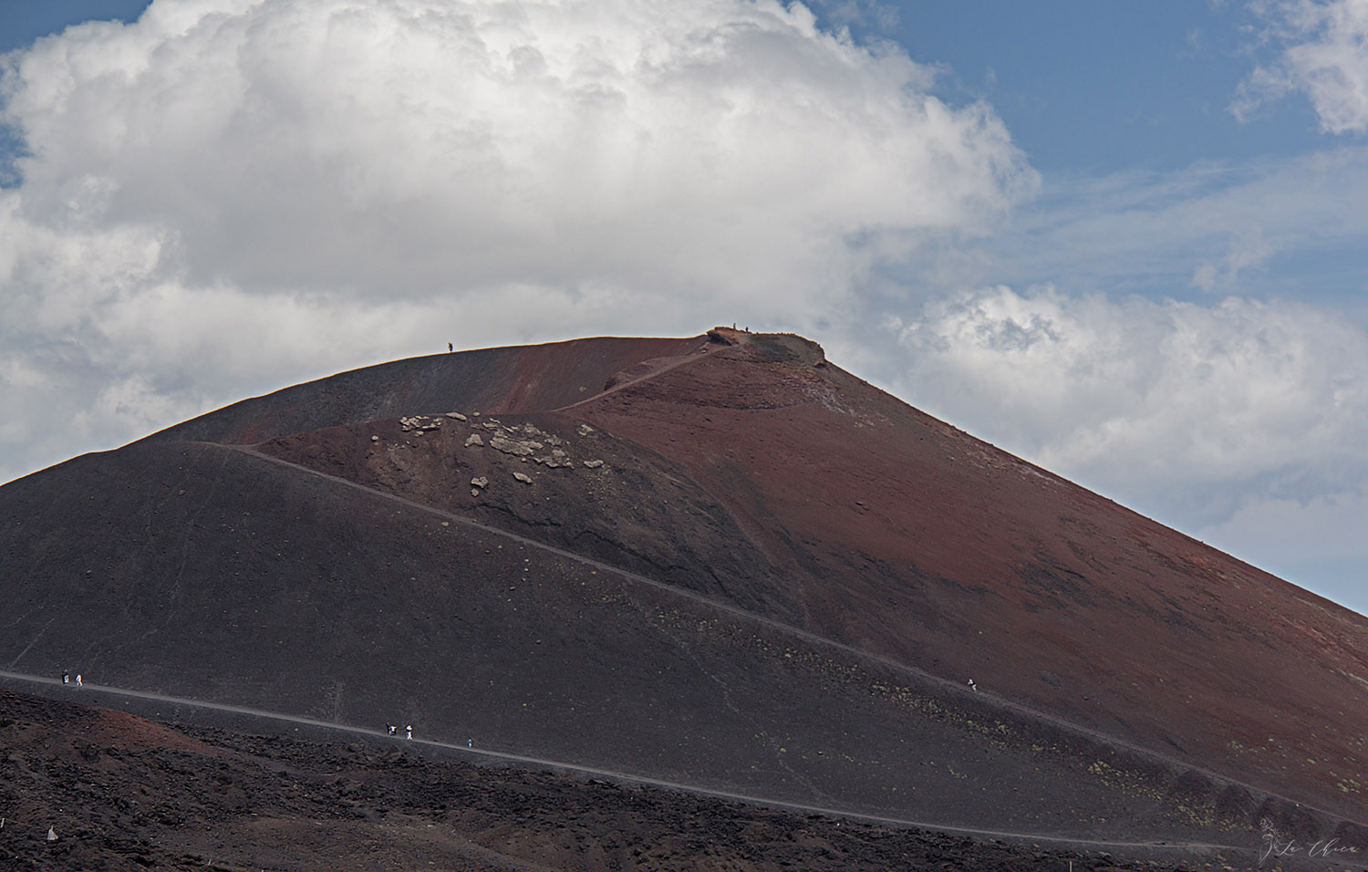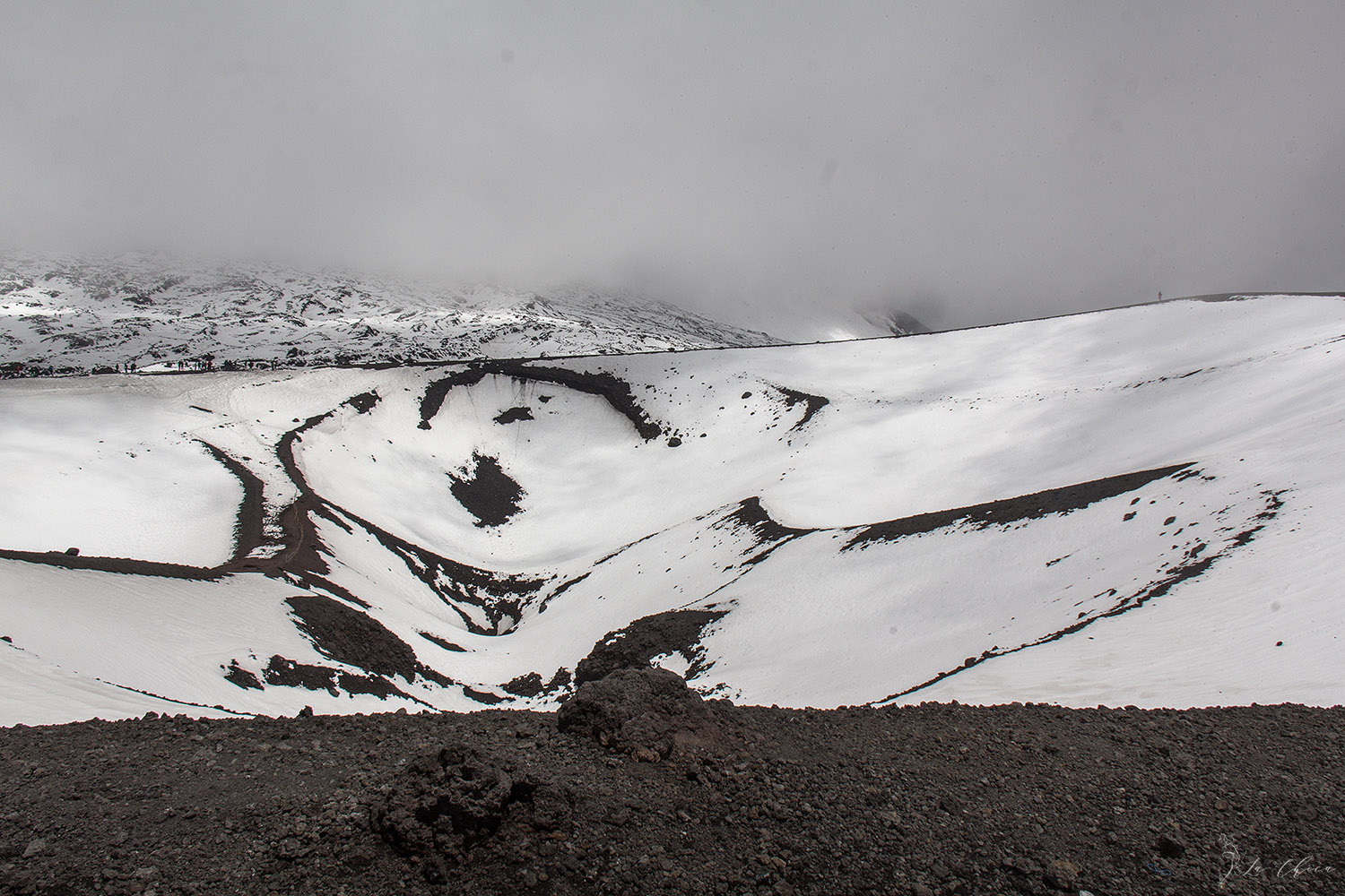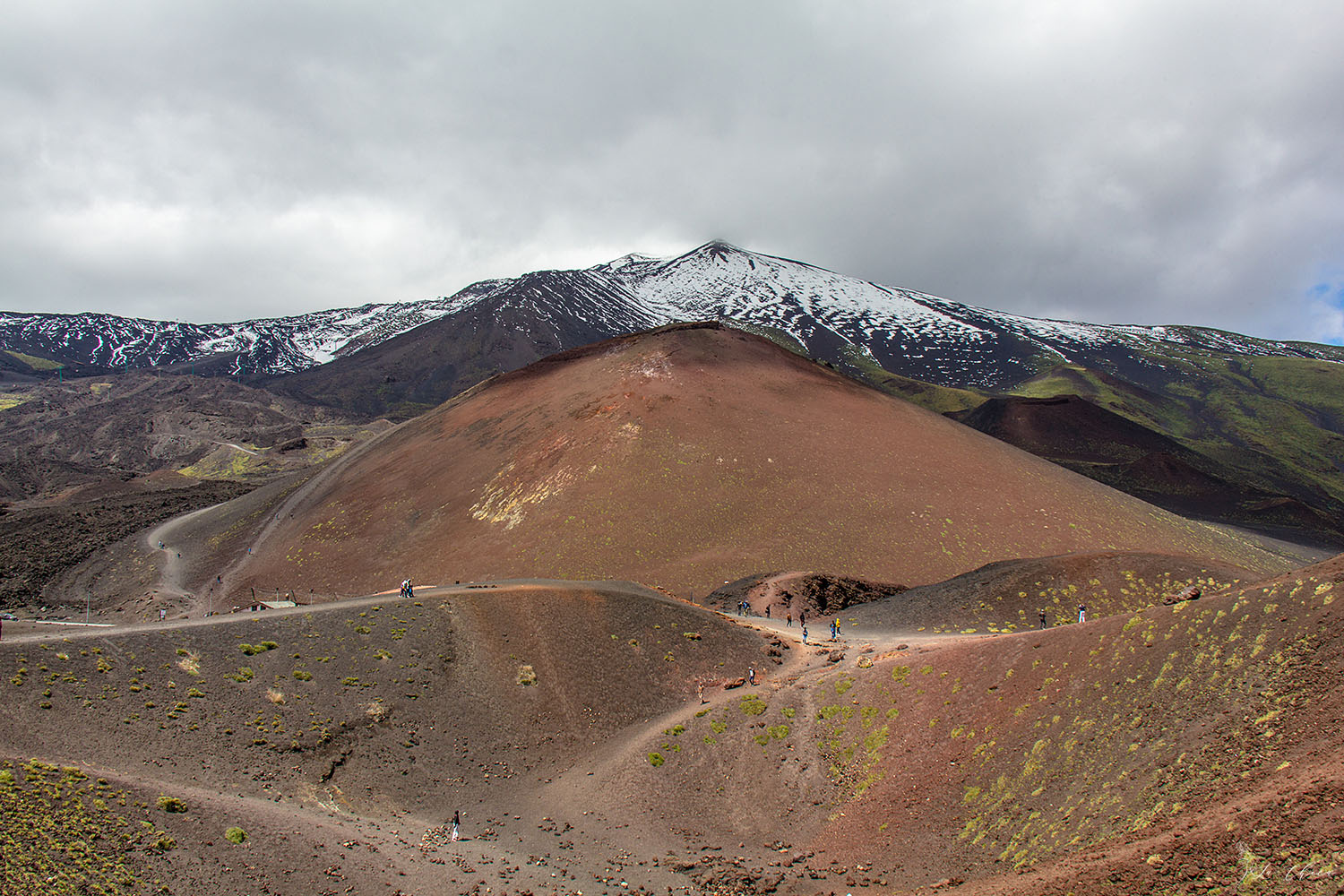 Погуляв по тем тропинкам, откуда не сдувало напрочь, намерзнувшись и налюбовавшись на окрестности, спускаемся вниз на фуникулере. Обед и пешая прогулка по одному из боковых кратеров. Тут тоже дует, но уже не насколько сильно, да и общая температура выше, снега нигде уже не лежит. Сплошная красота кругом.