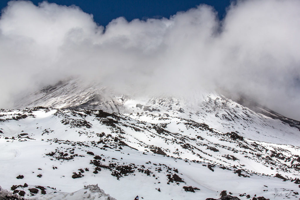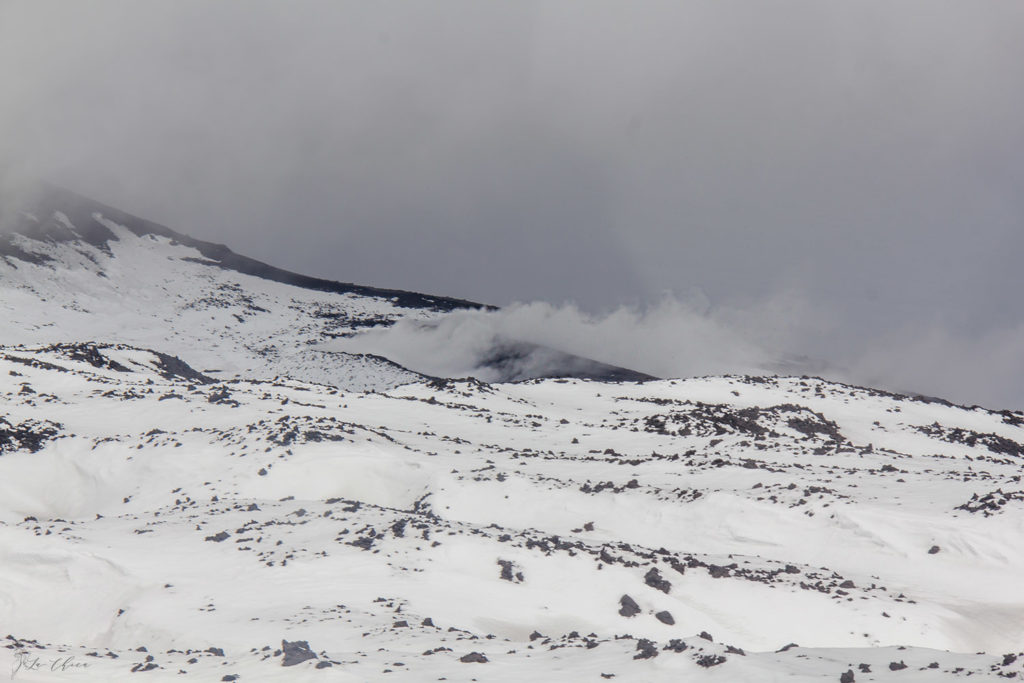 Не очень продолжительная поездка, и мы поднимаемся с 1900 до 2500 м над уровнем моря. Дальше пересадка на специальные вездеходные автобусы, которые поднимают уже выше 2900 м. Это основная туристическая площадка, но для желающих можно подняться еще дальше, но только в сопровождении гида. И погодные условия должны благоприятствовать. В нашей компании в данный момент не было цели пешего восхождения, да и погода явно не способствовала: по нашим оценкам ветер дул со скоростью больше 100 км\ч.