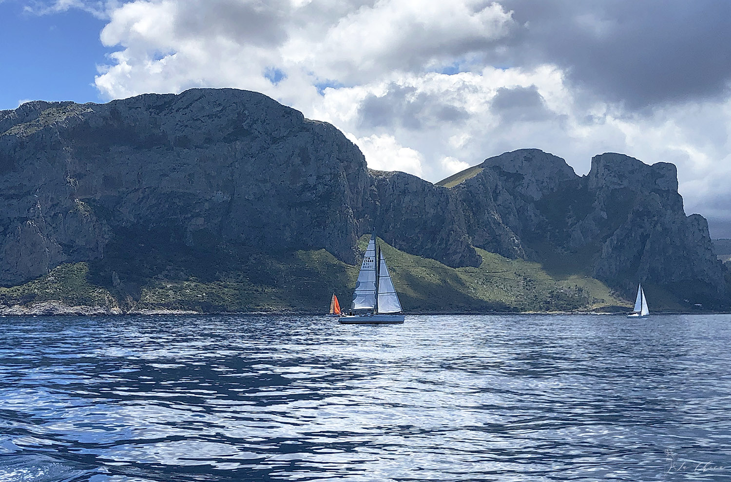 Заправившись и потеряв на всех метаниях туда-сюда больше часа, наконец-то вышли прямым курсом на Кальяри. По дороге, где-то в районе Трапани, прошли через местную регату. На море почти штиль, участники расслабленно дрейфуют узла в 1,5, и мы такие через их строй на моторе.