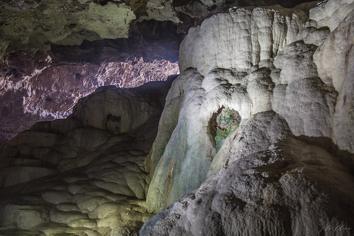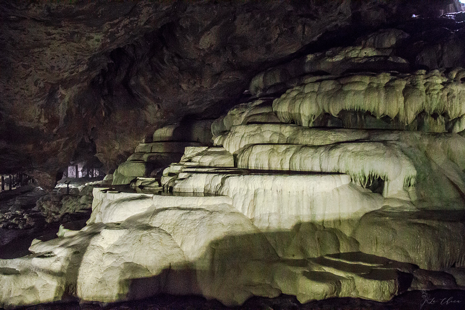 Пещера небольшая, похожая в чем-то на травертиновые террасы Памуккале. Но на сегодняшний день подзаброшенная. Раньше говорят даже вход был платный, сейчас с меня никто денег не просил, хотя на выходе встретила скучающего охранника. И дорожка по пещере подразвалилась местами. Но подсветка еще есть, и заехать однозначно стоит.