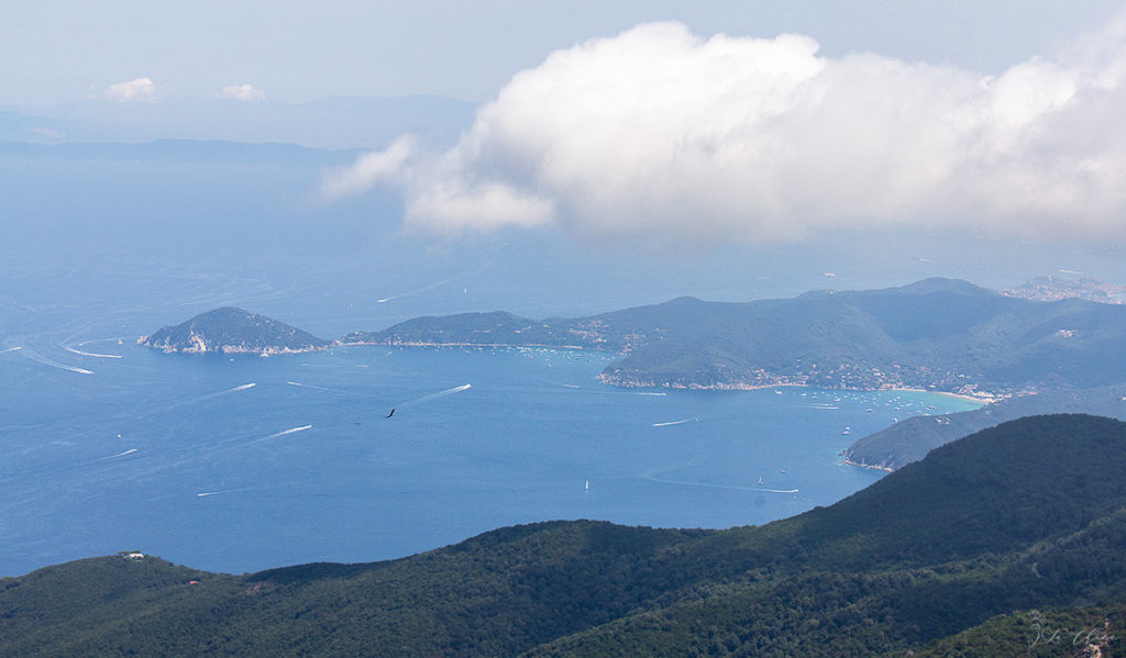Вид в сторону нац.парка Тосканский архипелаг и еще кучи пляжей. Все белые штрихи это лодочки. На скоростном катере с материка плыть совсем недалеко и многие приезжают позагорать даже на день