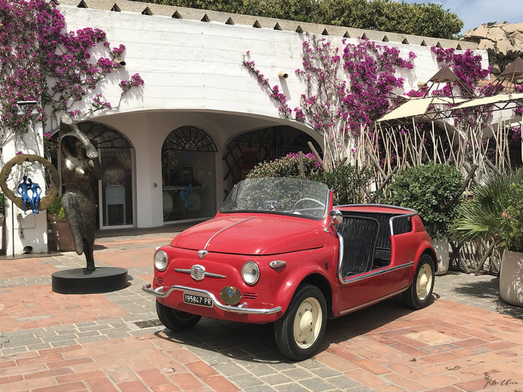 На следующий день на такси поехали в Порто Черво. На самом деле, курорт достаточно молодой, его начали строить лишь в 60х годах прошлого века. По чуть разнящейся легенде, тогда мимо тех берегов проплывал ливанский шейх Ага Хан Карим IV, и настолько ему понравилось место, что он выкупил большие площади и пригласил известных архитекторов для строительства марины для мега яхт и роскошного курорта. Сам городишко лично меня не настолько впечатлил, я б там земли выкупать не стала 🙂 А вот с мариной, проплывая уже на следующий день мимо, как по мне так получилась довольно курьезная ситуация. Сама бухта вроде и не сильно маленькая, но стоят там преимущественно не большие лодки. В самом центре только с десяток серьезных моторок. Но зато когда плывешь мимо, то буквально за углом от Порто Черво на якоре стоит больше десятка супер яхт под 100 и более метров. В 60х годах видимо и лодки были меньше, и осадка у них соответственно. А сейчас вся эта красота попросту не влезает в бухту по габаритам. Поэтому если вы действительно хотите посмотреть миллионы, а суммарно и миллиарды Порто Черво, то надо делать это с моря, с берега только тузики видны 🙂